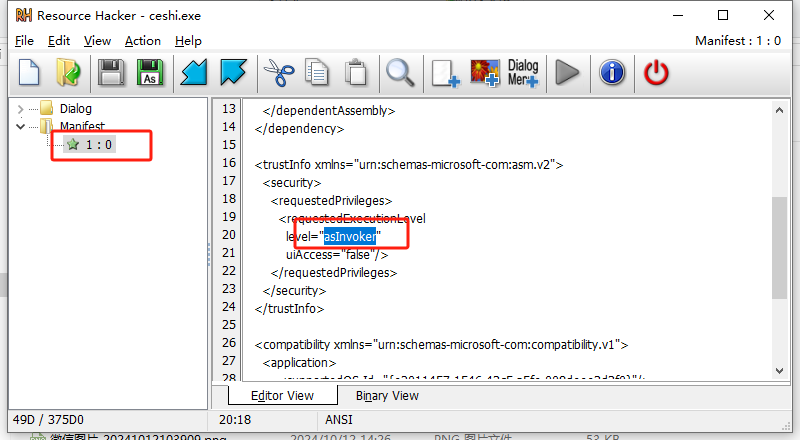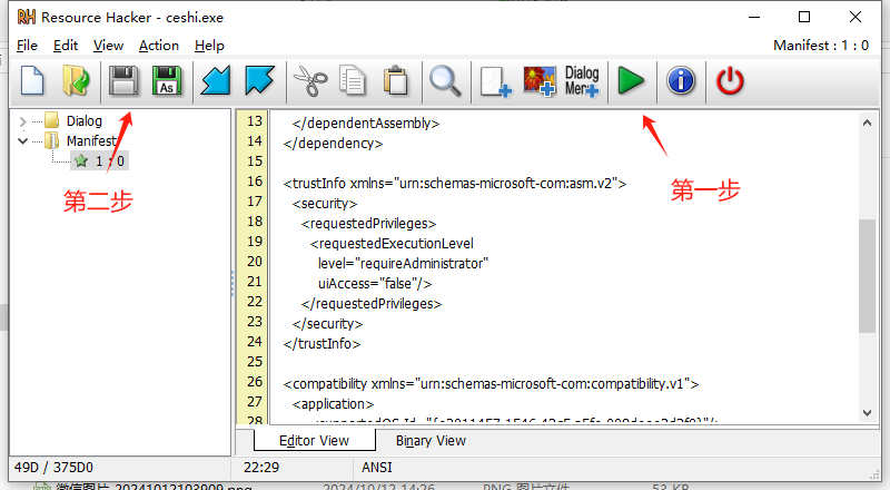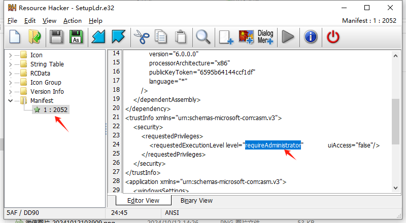 resource_hacker:设置文件具备管理员权限。
