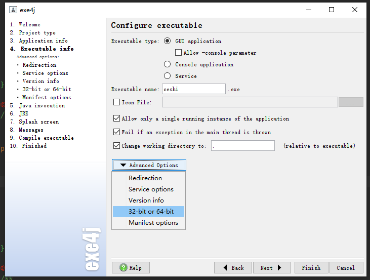 exe4j:将jar打包可执行的exe;
