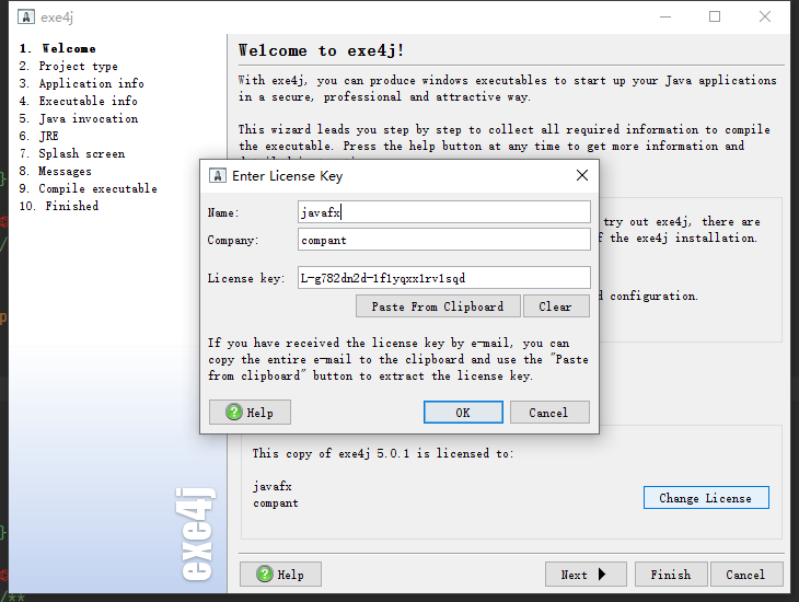 运行exe4j 并设置注册码